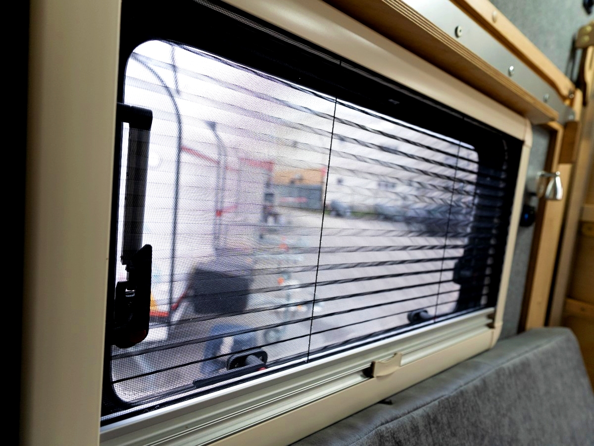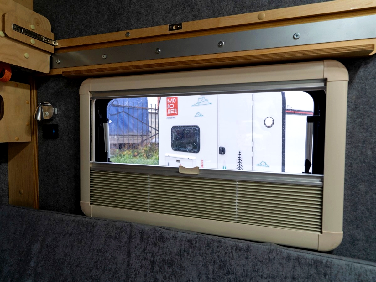 ● Окна: 2 окна, из алюминиевого сплава со сдвижной форточкой, москитной сеткой и размером 900x300 мм.