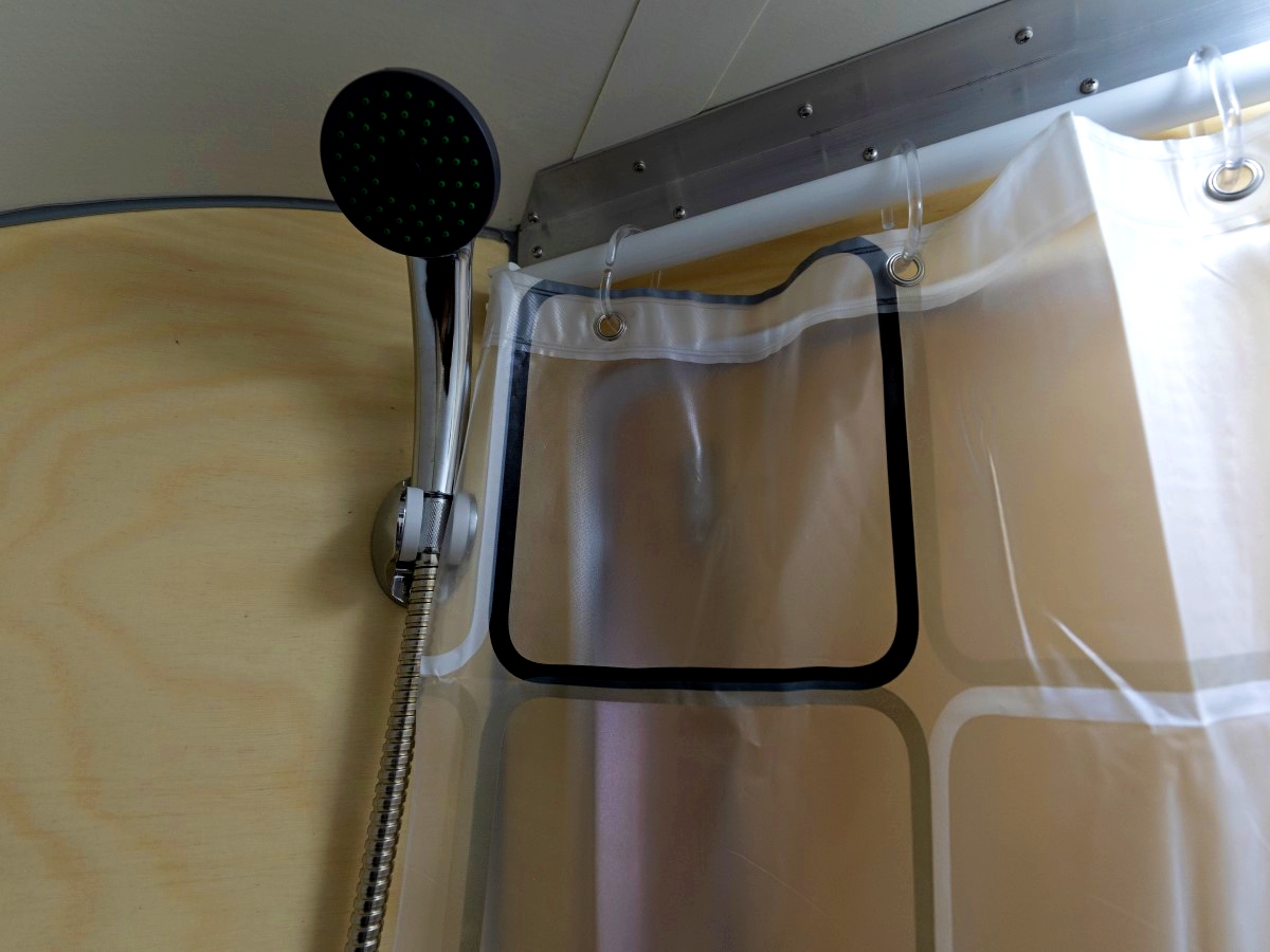 ● Душевая: Отдельная душевая комната с поддоном, шторкой и крючками для одежды.