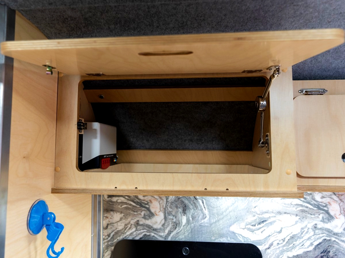 ● Чистая вода: Бак на 50 литров с заливной горловиной, погружной насос на 12В, кран и датчик уровня воды.