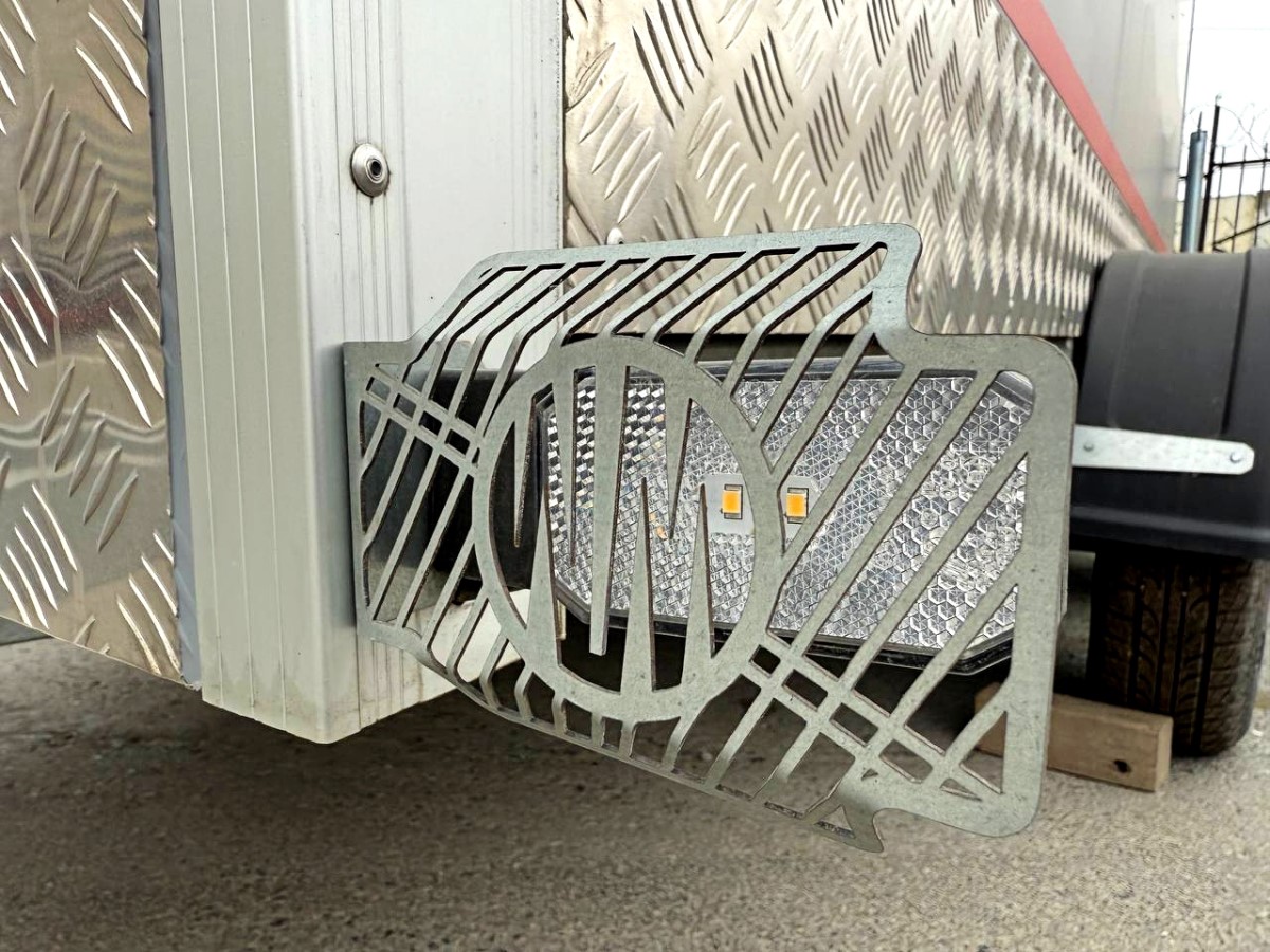 ● На передней части установлена накладка из рифленого алюминия, чтобы сберечь прицеп от попадания камней летящих из под колес;