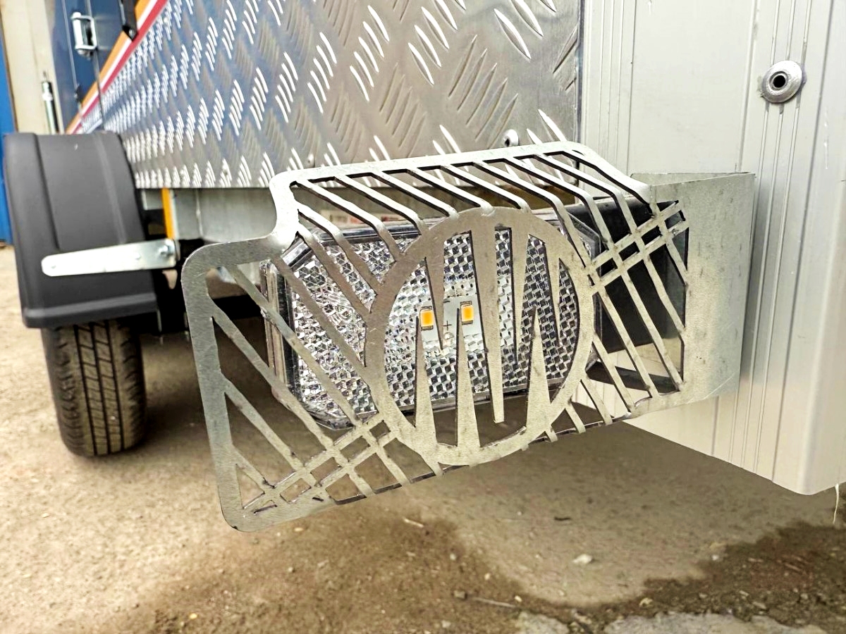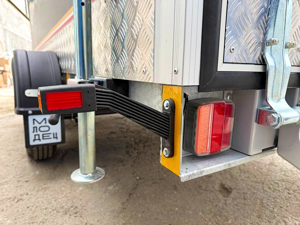 ● На передней части установлена накладка из рифленого алюминия, чтобы сберечь прицеп от попадания камней летящих из под колес;